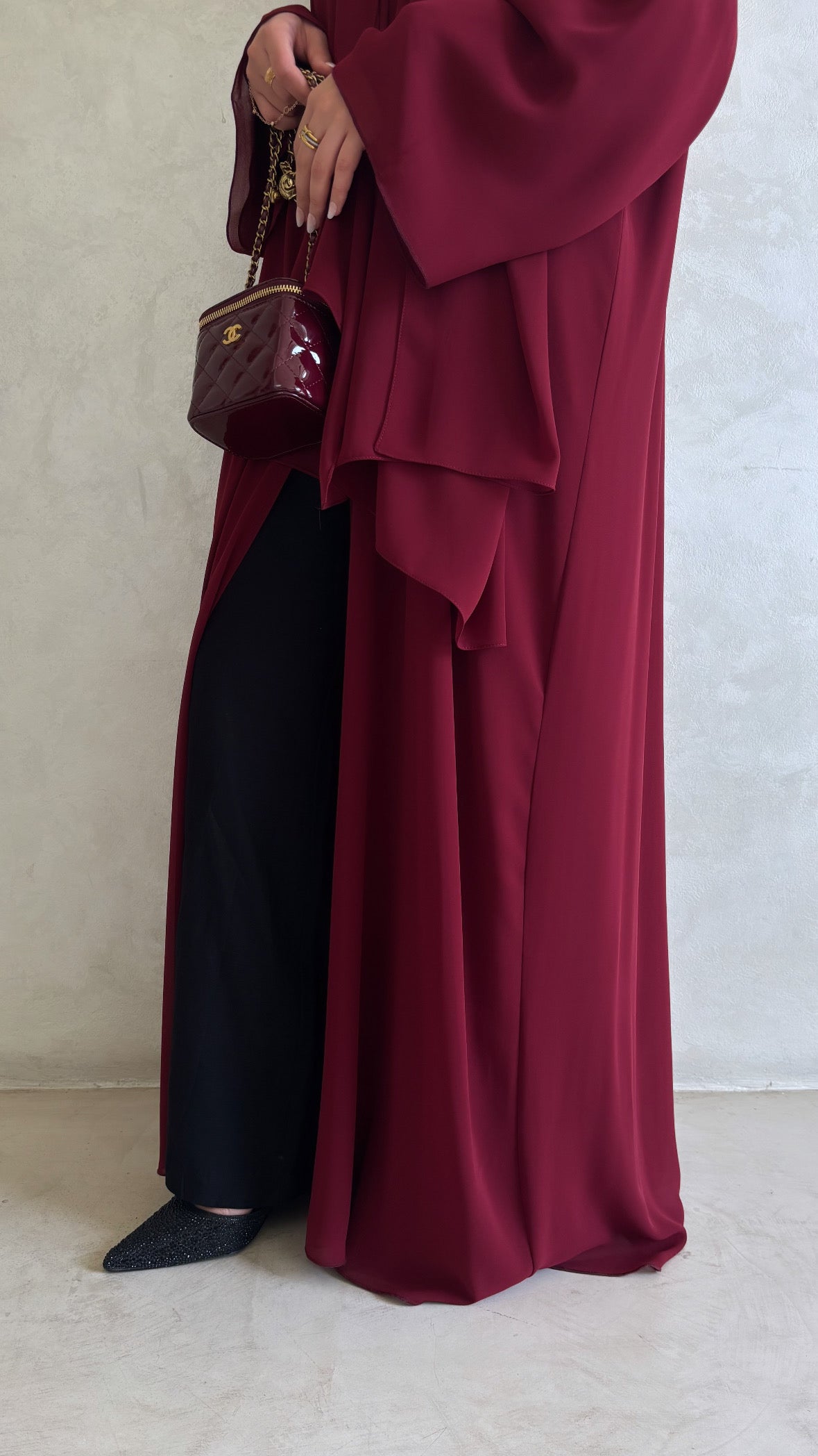 Chiffon Layered Abaya | Burgundy
