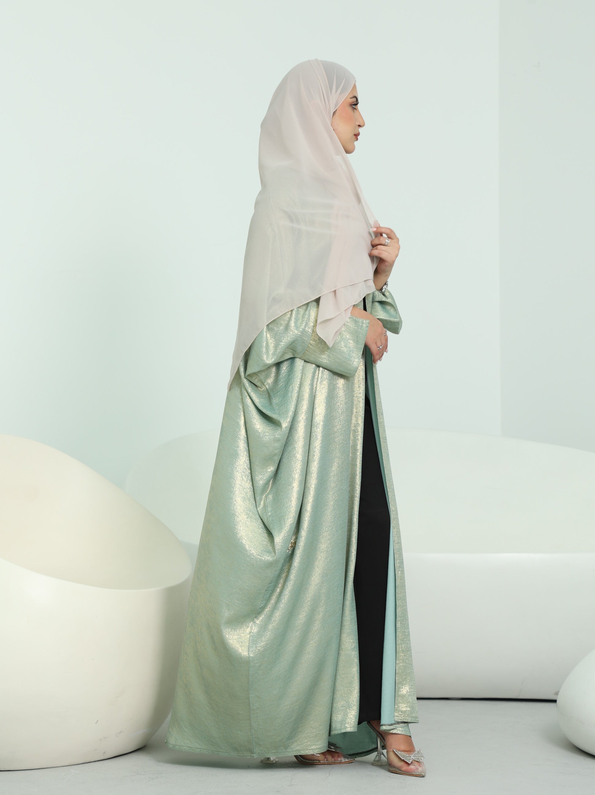 The Shimmer Open Abaya offers a sleek, modern look with its shiny fabric and subtle sleeve slit. Lightweight and easy to wear, it’s perfect for adding a touch of elegance to any outfit. Effortless style for every occasion.