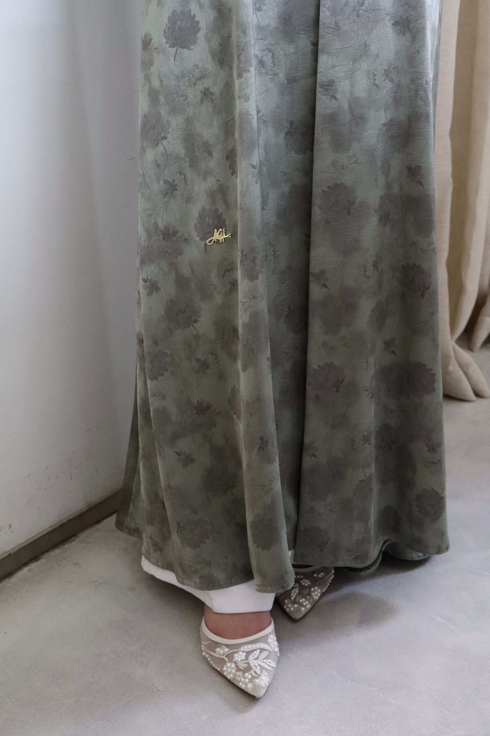 Spring Bloom Abaya - A soft a-line cut abaya crafted from a printed silk-touch fabric with delicate floral impressions. Designed with subtle sleeve slits that maintain full coverage. Each piece is paired with a matching wide emirati chiffon hijab to complete the look.